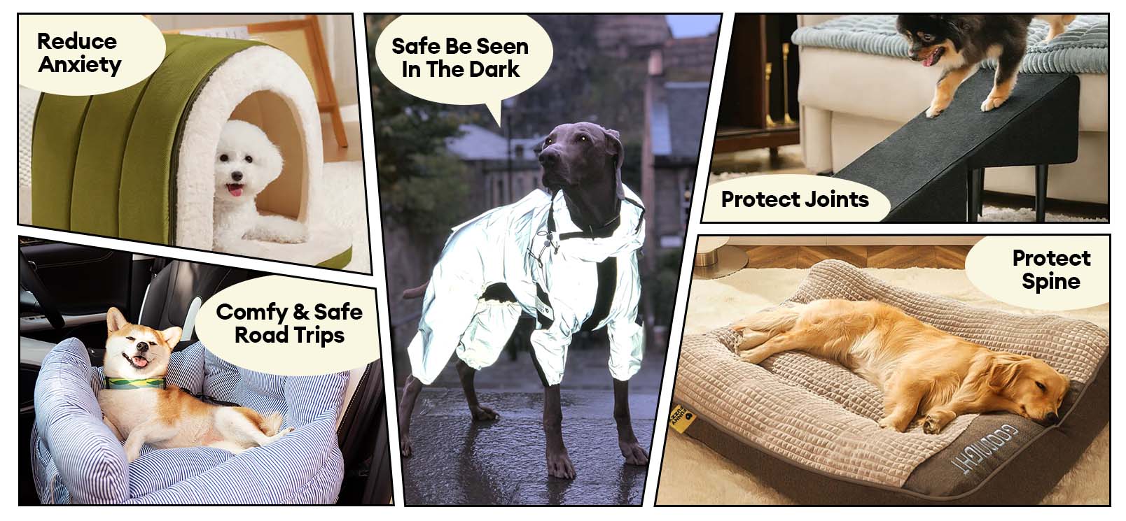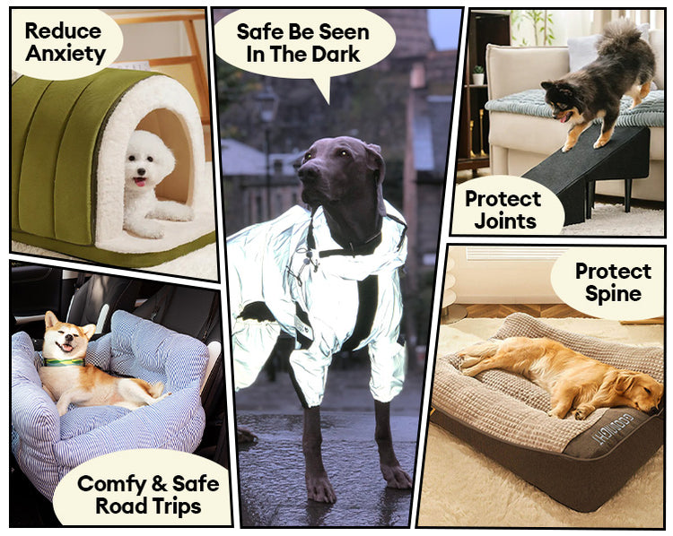 From joint-supportive stairs that make every step gentle, to orthopedic and calming beds that bring comfort and peace of mind — every piece is designed with wellness in mind. Our chew toys strengthen, our nail clippers protect, and our jackets shield from wind and cold and night.